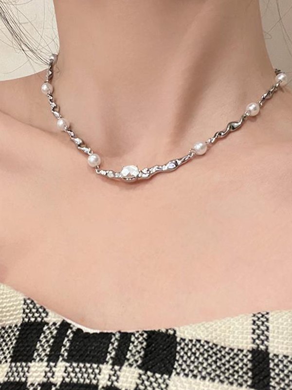 Silberkette Faux-Perlen-Halskette