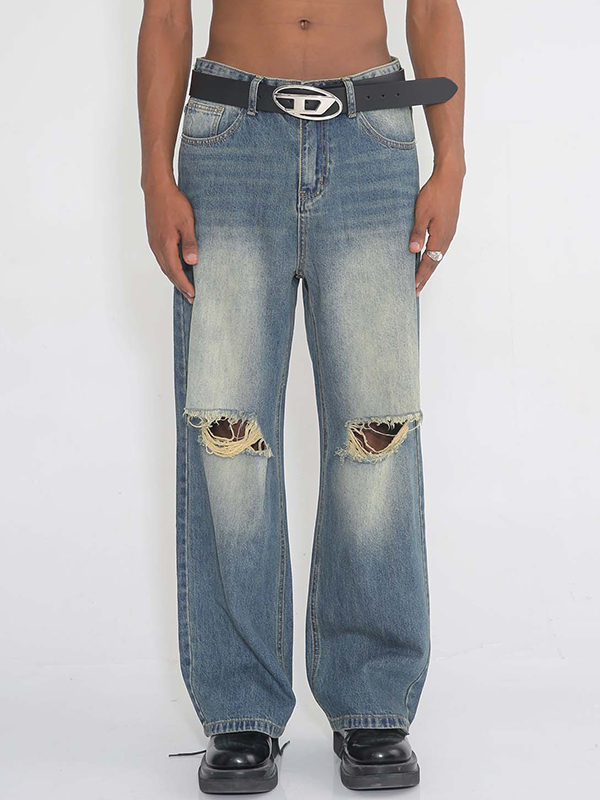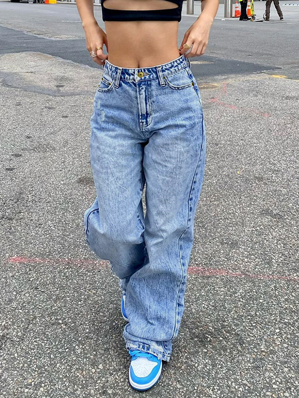 Persönlichkeit gewaschene Taille Retro Loose Jeans