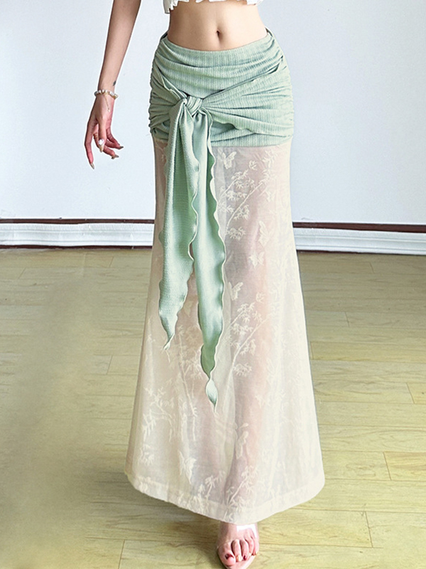 Maxirock aus Spitze mit Riemchen und Rüschen