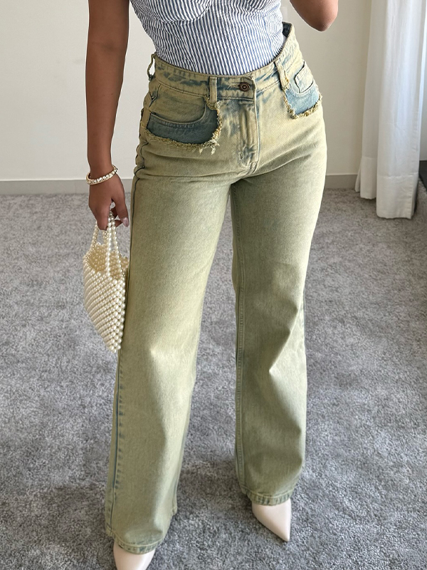 ·Stylische Details: Das Bahnendesign an den Taschen verleiht dieser Jeans eine stilvolle und einzigartige Note. Sie haben mehrere Gürtelschlaufen und werden mit einem Reißverschlussdesign mit Metallknöpfen verschlossen.
